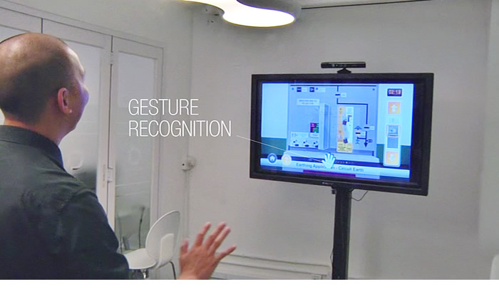 Spatial Gesture Recognition is another fast growing technology. It’s the ideal technology to replicate situations that combine a remote location with a physical activity. It means controller-free activation, with virtual images responding to your body movements. We used it to familiarise CLP's staff with a set of important safety procedures, remotely. With our Microsoft Kinect application, technicians are trained to know which instruments to adjust in a set of given events. Using photography of the equipment, they can perform the tasks virtually. Our app asks questions that require the technicians to navigate through and interact with the video image, identifying the relevant controls. It also also teaches safety drills such as emergency evacuation routes, which they can learn to navigate virtually.