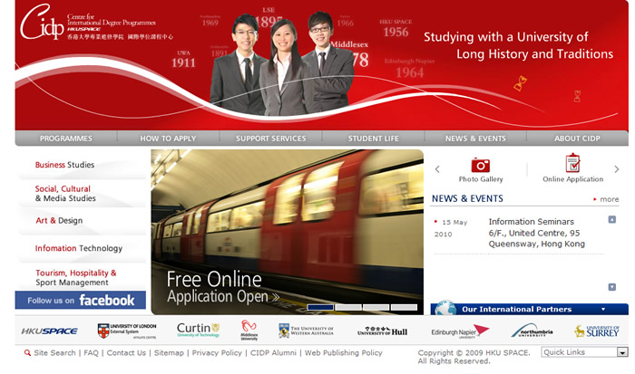 We also work for many other higher education institutions, designing the information architecture and delivering the technical implementation expertise, a task we undertake for CU Business School, PolyU Hotel & Tourism, HKU Space Community College & CIDP.