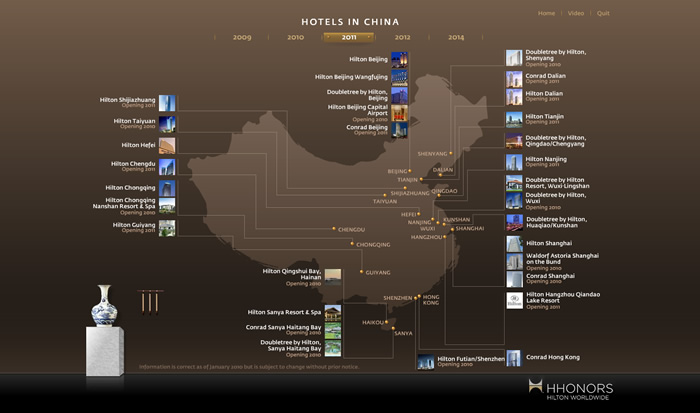Hilton Hotels are one of the most familiar brands in the world, and are expanding rapidly in China. Built for the Chinese corporate market, we devised a sales and marketing CD and mini site which gives an overview of Hilton’s portfolio of hotels on the mainland – and their key attractions to business such as conference facilities.
