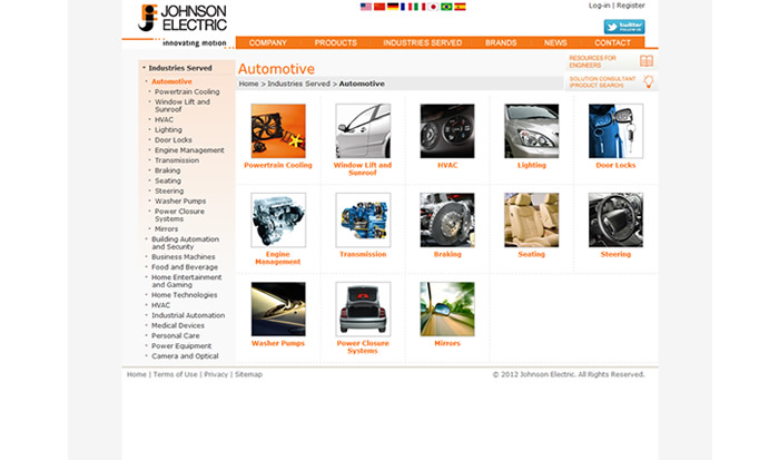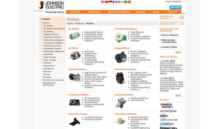 Johnson Electric are one of the biggest, most ubiquitous component manufacturers in the world. They may not be a household name but their products – Micromotors, Motion Sub-systems, Human Machine Interfaces, and Infrastructure Control Systems – can be found in many products that are, such as cars, cameras, drills, lawn mowers, medical equipment and a thousand other familiar items. Our task was to restructure their B2B website to make it easier for engineers to find the product information and specifications they needed, a task that entailed an exhaustive revision of the information architecture, a new CMS and an in-depth UX testing programme. The results can be seen in an uptake of site users and a significant increase in leads generated online.