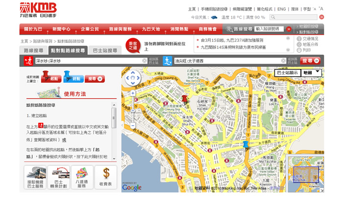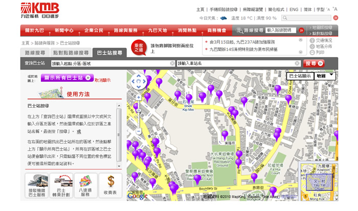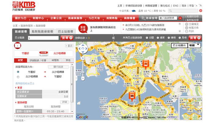 Our site for KMB, the Kowloon Motor Bus company, uses Google API to show where bus stops are on each route – and photos of them to simplify journeys. This means enhanced search functions providing superior usability and user experience on the website, with online timetables that can be accessed either by web or mobile.