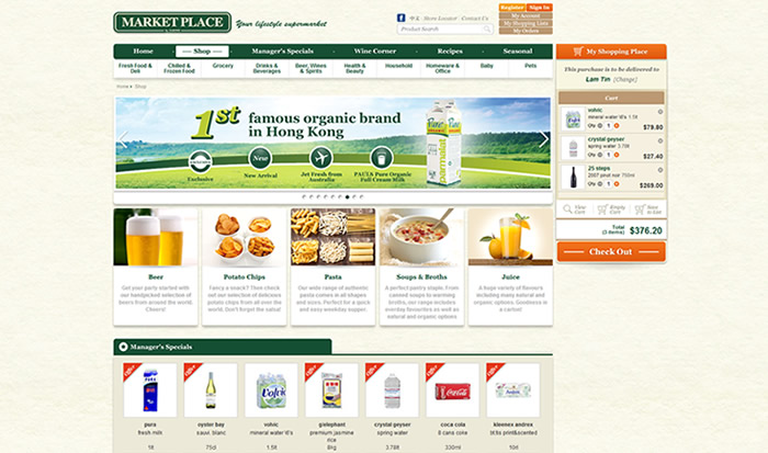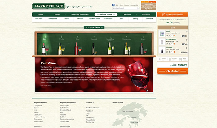Following a comprehensive round of pre-launch research and UX testing in early 2012, Designercity launched the new website for 'Market Place by Jasons', one of Hong Kong's leading prestige supermarkets. The new site, aimed at more affluent shoppers, reflects an active and growing trend towards e-Commerce in the territory. Technical innovations include a Persistent Header to keep special offers front of mind, Responsive Design, a Persistent Shopping Cart, Recipes with ingredients list on demand, a Personalised Shopping List, Association between Product Listing and Cart, and "Last Minute Saving" for promotional offers on selected items. The new site brings new standards of usability to grocery shopping in Hong Kong, and incorporates numerous innovations to add value to both the customer and client.